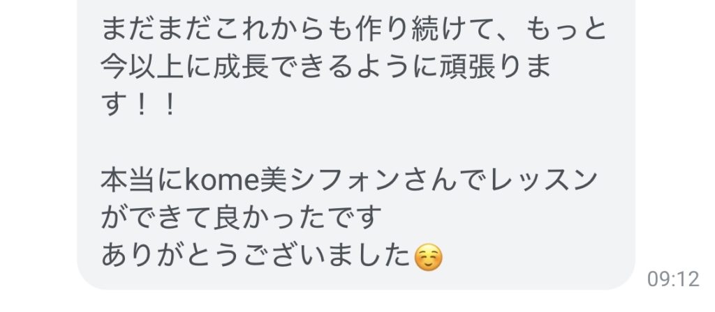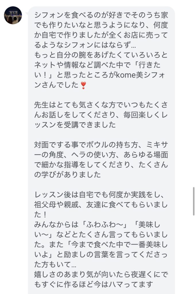 米粉シフォンケーキの🔰初心者講座を受けての感想を頂戴しました!