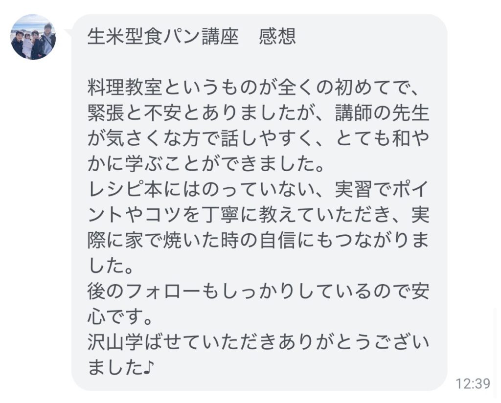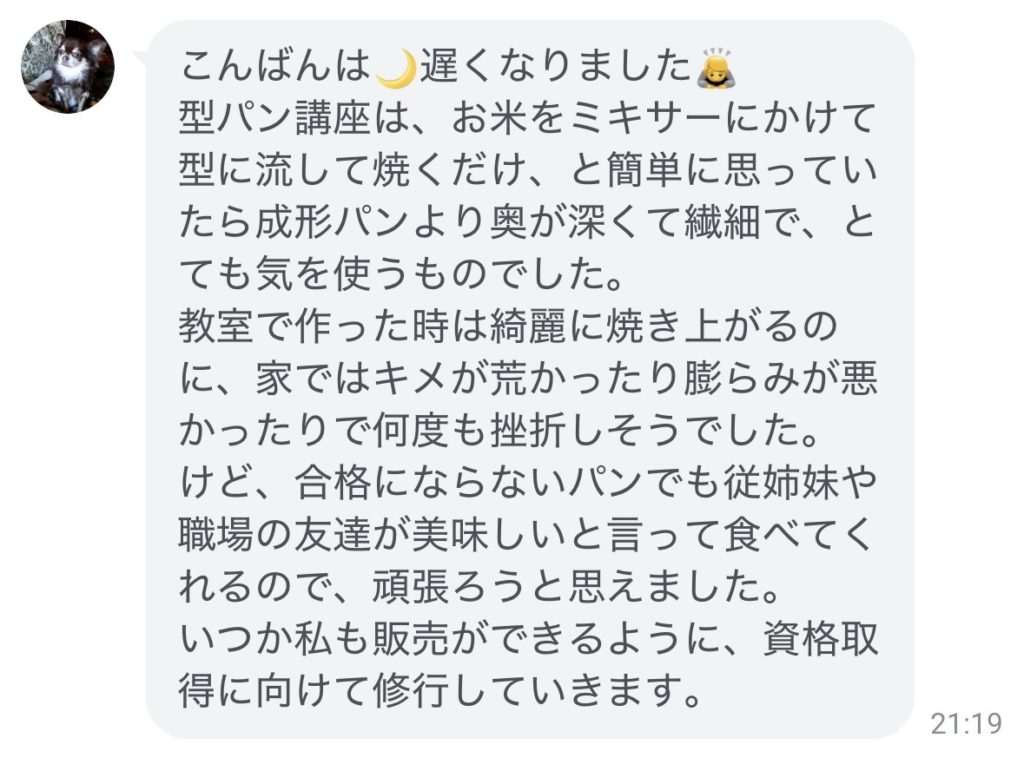 生のお米から作る生米「型食パンコース講座」を終えての感想をいただきました☆