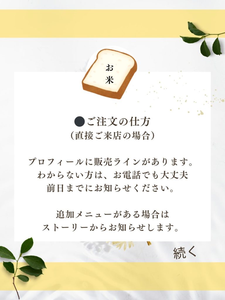 当日の余分のパンは、Instagramで配信しようと思っています。